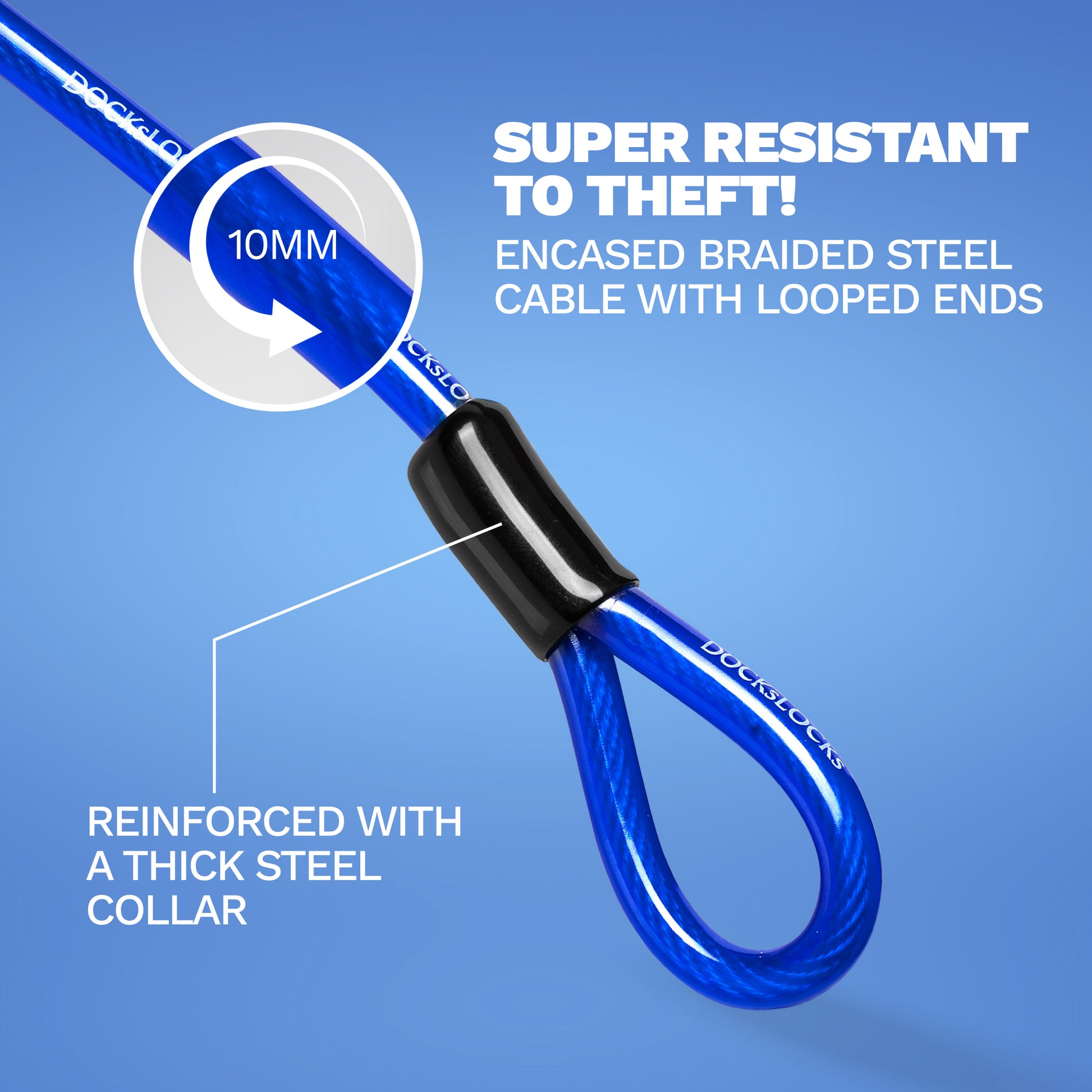 DocksLocks® Anti-Theft Weatherproof Straight Security Cable with Looped Ends (5', 10', 15', 20' or 25')