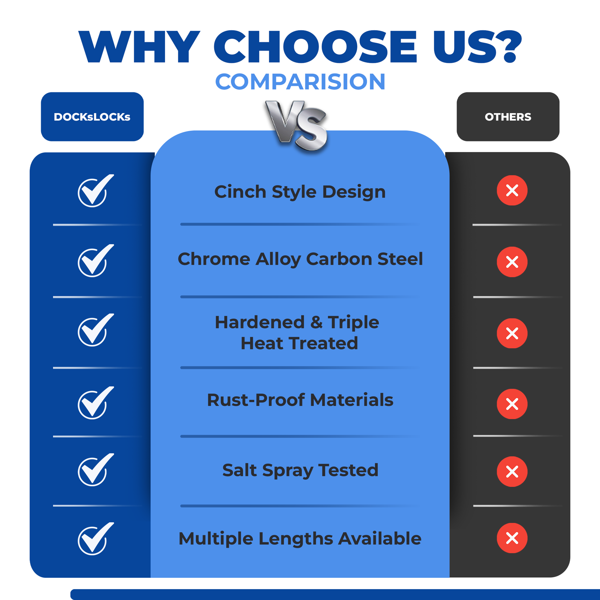 | Materials (Chain) | AISI 1035 chrome alloy cabon steel, galvanized and treated with a powerful corrosion resistant sealant |